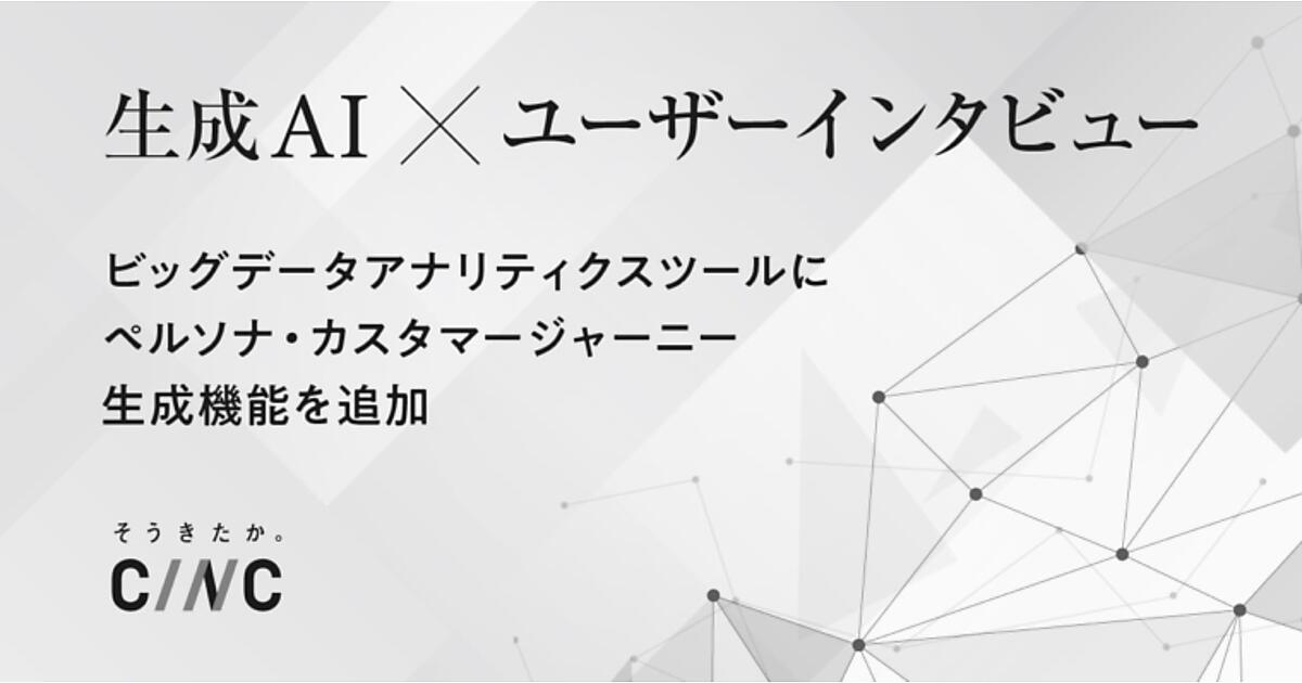 マーケティングソリューション事業のCINC(シンク)は、同社の生成AI(人工知能)活用ビッグデータアナリティクスツールに「ペルソナ・カスタマージャーニー生成機能」を加えた、と6月11日発表した。製品の情報とユーザーインタビューを入力すると、AIがペルソナ(ユーザー像)とカスタマージャーニー(購買へのプロセス)を作成する。