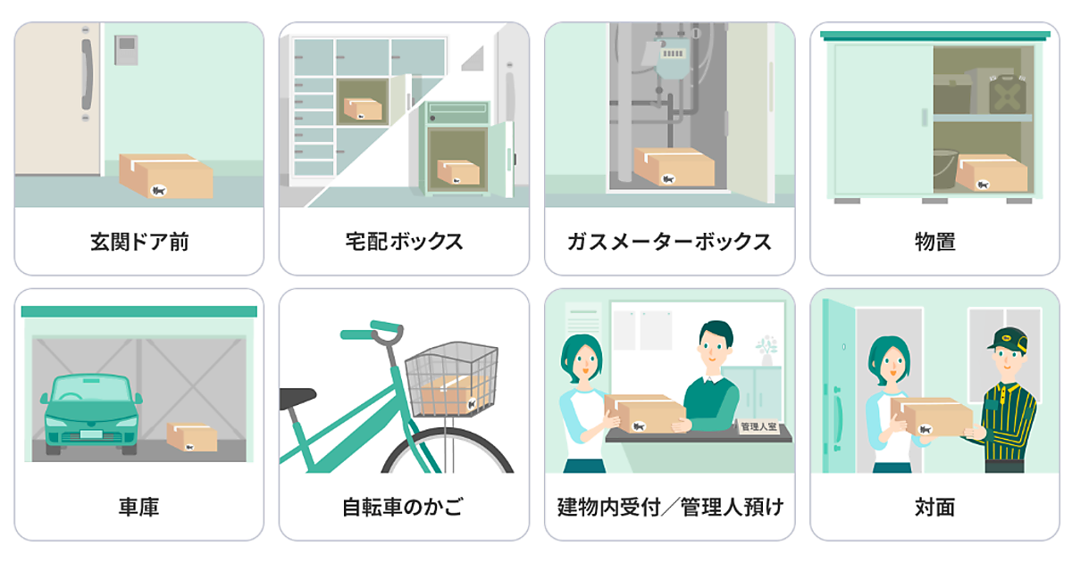 ヤマト運輸は、宅配便サービス「宅急便」と同小型荷物「宅急便コンパクト」の受け取り方法に「置き配」を6月10日に加えた。自宅の玄関前、宅配ボックス、物置など、さまざまな受け取り場所が指定できる。自宅や同社の営業所で荷物を受け取る際の受領印やサインの省略も可能にした。自宅では、非対面でも荷物が受け取れる。