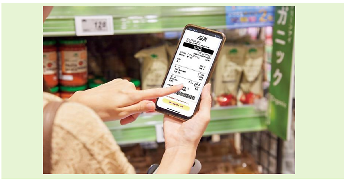 電子レシートの画像をスマートフォンに保存する機能も備え、紙のレシートと同じように返品や領収書の発行にも対応する。「電子レシートご利用キャンペーン」を6月21日~8月31日に実施する。期間中に電子レシートを利用した買い物客を対象に、イオンのポイント「WAON POINT」を発行ごとに付与するほか、抽選でエコバッグを贈る。