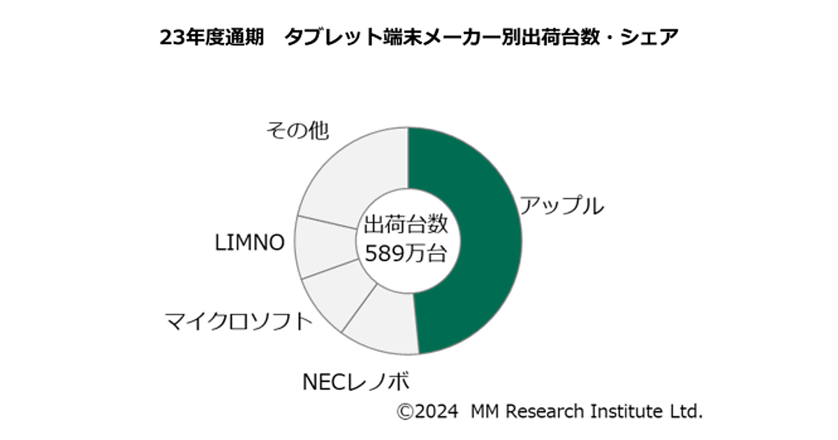 ICT市場調査コンサルティングのMM総研は、2023年度通期(2023年4月~2024年3月)の国内タブレット端末の出荷台数に関する調査結果を発表した。