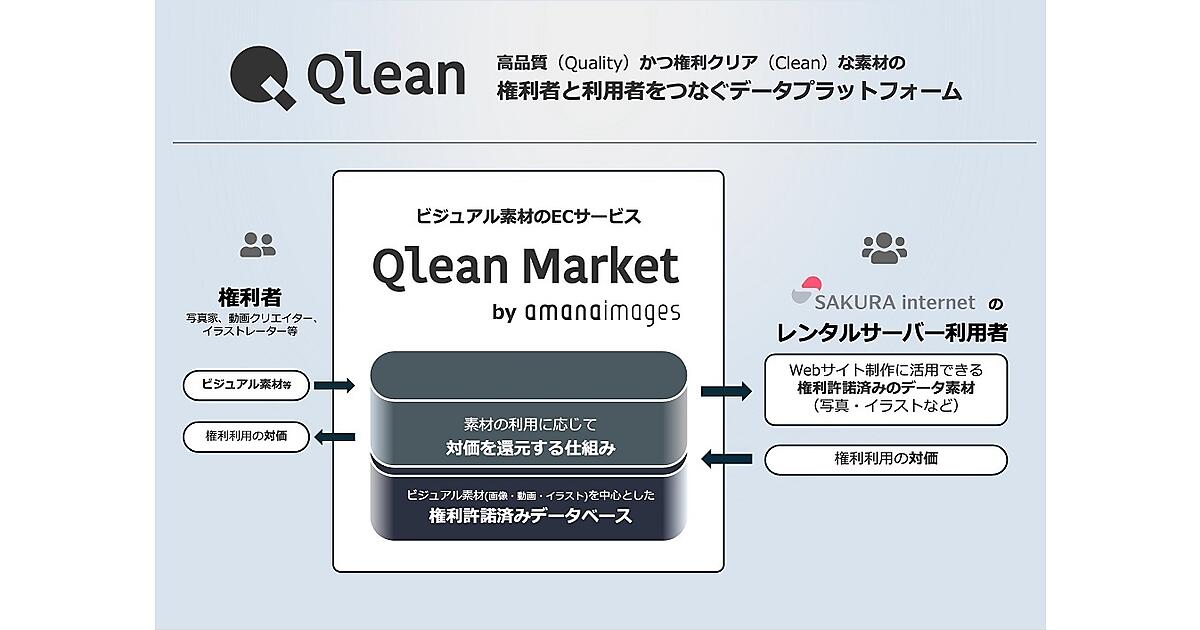 さくらのレンタルサーバ上でWebサイトを運営するさくらの顧客は、Qlean Marketの定額制プランを10%割引価格で使用できる。単品プランは8月31日まで25%、9月以降は5%割り引く。Qlean Marketをさくらインターネットの顧客に紹介して、ロイヤリティフリーの写真やイラストの画像素材の利用を促進する。Web制作でクラウドを活用するクリエイターや技術者を支援し、ビジュアル素材権利者への還元拡大に取り組む。
