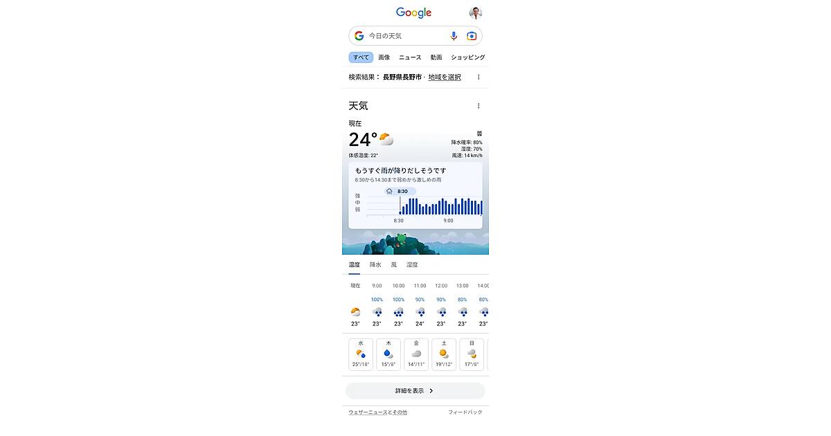Googleは「Google検索」に追加した天気予報「ナウキャスト」と「ハッシュタグ検索」の2つの新機能を6月19日に発表した。天気予報はウェザーニューズと新しい雨量予測モデルを開発し、最大12時間先まで5分ごとの降水量予測を7月から提供する。もう1つのハッシュタグをつけた検索は結果ページにSNSを含むインターネット上の媒体からタイムリーな話題やニッチな情報を表示する。現在は日本だけの提供となる。