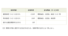 - 【助言】広告または表示が、消費者の誤解を招く、または社会的・道義的問題等を有する可能性があるため、修正等の検討を求めることが必要と認められるもの。(従来の「提言」から名称変更)