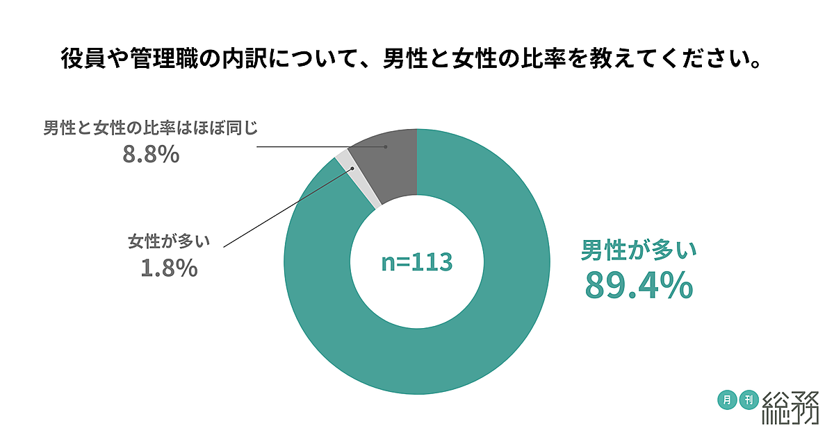 約9割の企業で役員や管理職は「男性」