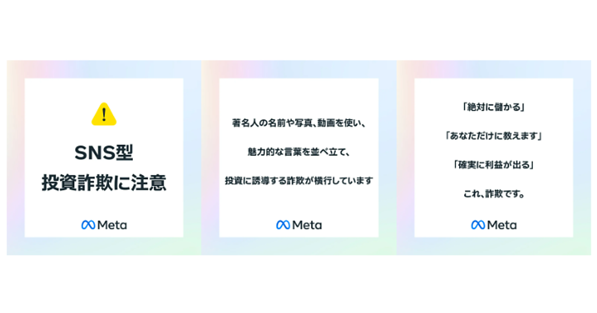 Metaは、日本で著名人の画像を無断使用した詐欺広告の被害が起きていることを重く受け止めているとし、詐欺広告への対応を強化して不正行為を阻止する対策と措置を講じている、という。日本語、日本の文化的背景、ニュアンスを理解する人員による審査と広範囲な検出技術を組み合わせ、詐欺的や誤解を招く行為を行うアカウントを特定している。