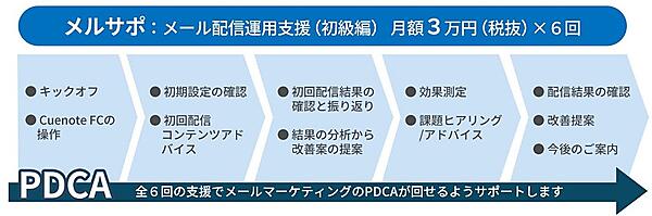 デジサポは、課題に応じた「リードナーチャリング(見込み顧客育成)支援」「リードジェネレーション(見込み顧客獲得)支援」「マーケティングコンサルティング」の3つのプランを用意した。週1回の定例会、提案資料の作成、ディスカッションなどを行う。料金はメルサポが月額3万円(税別)が6回、デジサポは月額25万円(同)で最低利用期間1カ月。