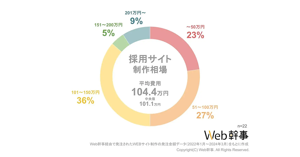 採用サイト制作の平均相場は104.4万円、中央値は101.1万円