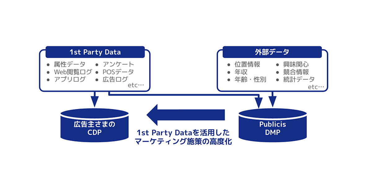 Publicis DMPは、KDDIグループのSupershipが持つ広告技術を生かし、キャリアデータや2nd Party Data(特定のパートナー企業からの外部データ)などの多様なデータソースを使った高精度なマーケティング施策が実施できる。広告主が保有するプライベートDMPのデータ連携で1st Party Data(自社で収集したデータ)を生かした施策の高度化も可能になる。