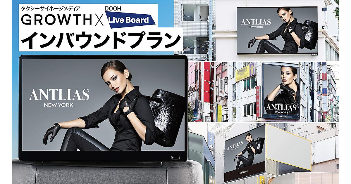 LIVE BOARDが運用するDOOHメディアとGROWTHを連携させ「GROWTH×LIVE BOARD インバウンドプラン」と名付けた。訪日旅行客が2024年上半期(1~6月)に過去最多となり、訪日マーケティング需要が高まっていることを受けた。訪日客のタクシー利用も増加し、1週間を通して乗車率が32%を占める車両もある。そのため、タクシー移動中に訴求できるプランを開発した。