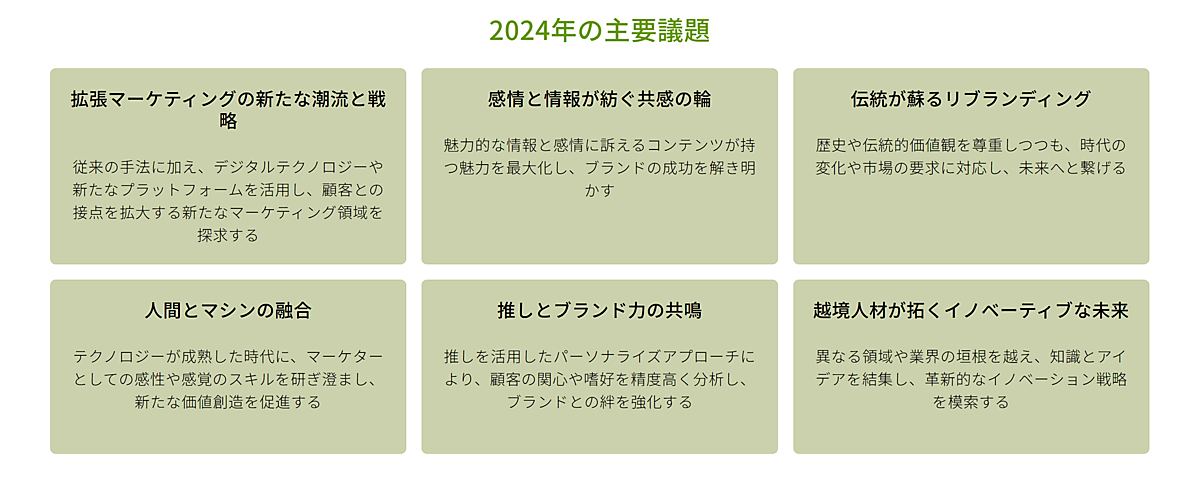 「CMO Japan Summit 2024」では、コーヒーブレイクやネットワーキングランチを含む多くの交流の時間を所々に挟みながら、基調講演・ケーススタディプレゼンテーション・パネルディスカッションを行う。本イベントを通じて、現在の市場環境下における課題やビジネスチャンスについての活発な議論を行う。