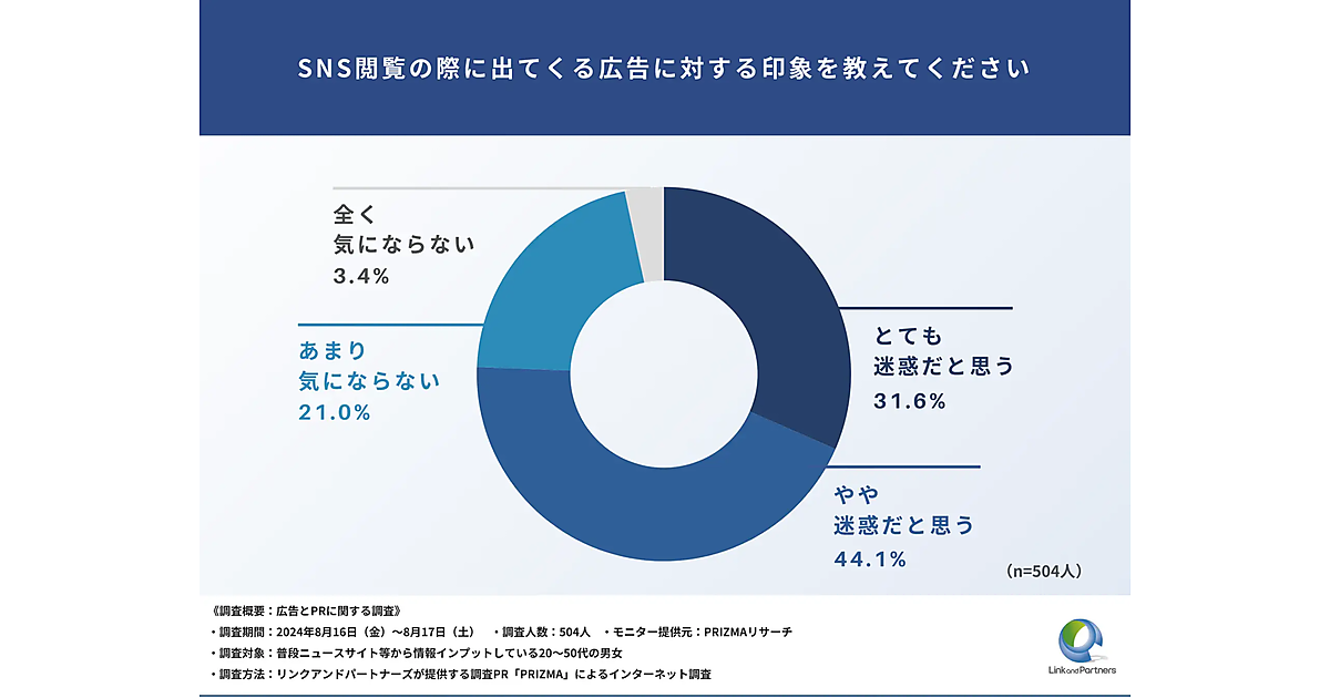 リンクアンドパートナーズは、「広告とPRに関する調査」を実施した。普段ニュースサイト等から情報をインプットしている20~50代の男女504名が回答している。
