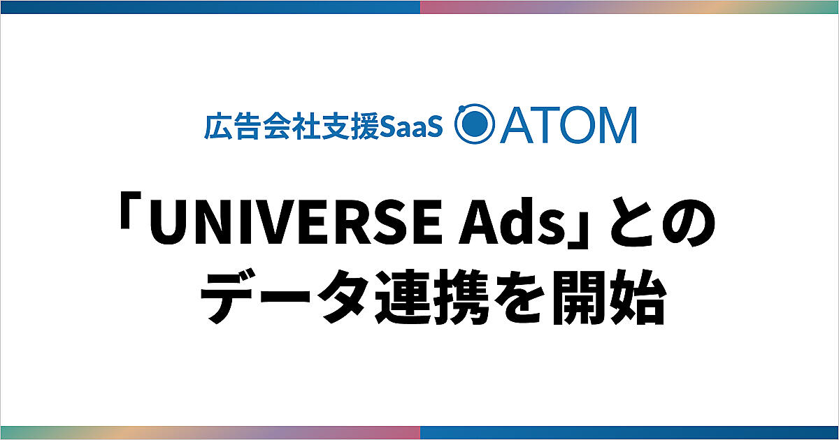 中堅・中小企業向けマーケティングテクノロジー事業のSO Technologies(エスオーテクノロジーズ)は、提供する広告会社支援SaaS「ATOM」が、マイクロアドのDSP(広告主向け広告配信プラットフォーム)「UNIVERSE Ads」とデータ連携を始めたと8月29日に発表した。広告アカウントの連携ができ次第すぐに広告運用業務に活用できる。