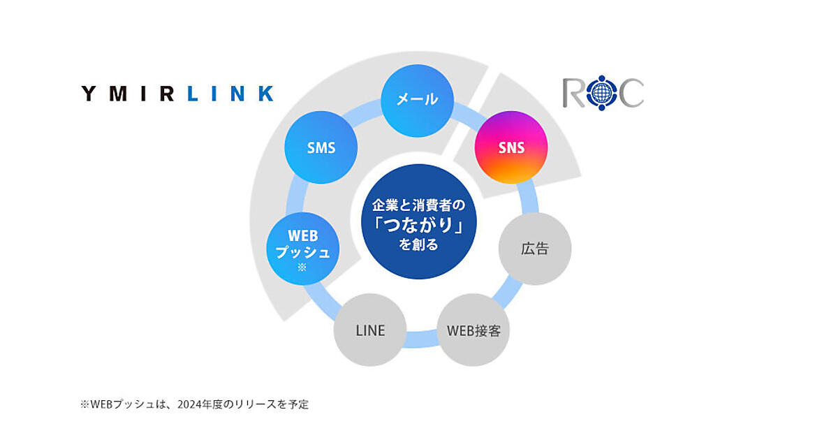 ユミルリンクはメッセージングプラットフォーム「Cuenote(キューノート)」でメール配信システム「Cuenote FC」を主軸としてきたが、ROCがグループに加わり、SNSのプロモーションとレポートツールのRepostaの提供が可能になった。メール・ショートメッセージ・SNSの複数チャネルを活用したマーケティング支援をグループで強化していく。