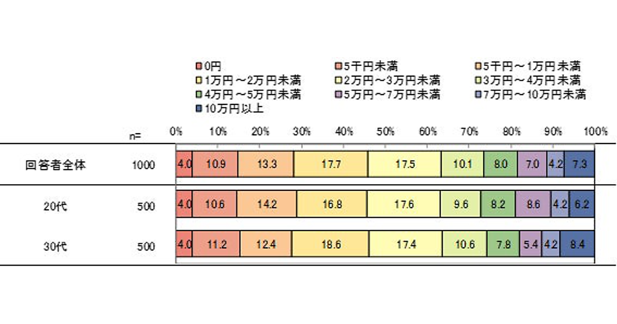 20-30代が自由に使えるお金は「月2万円未満」が約45%