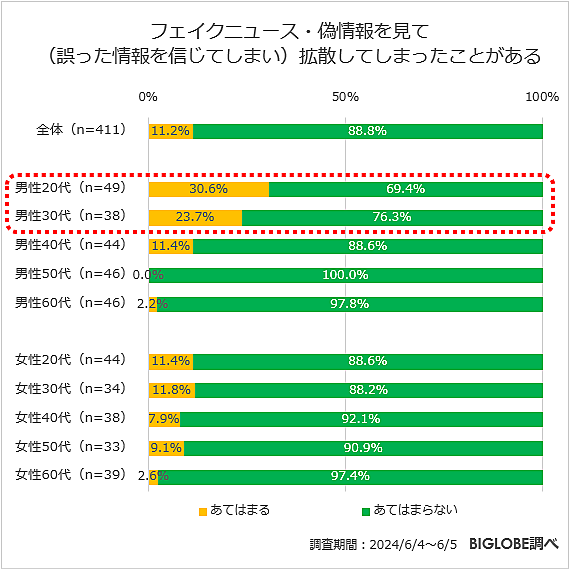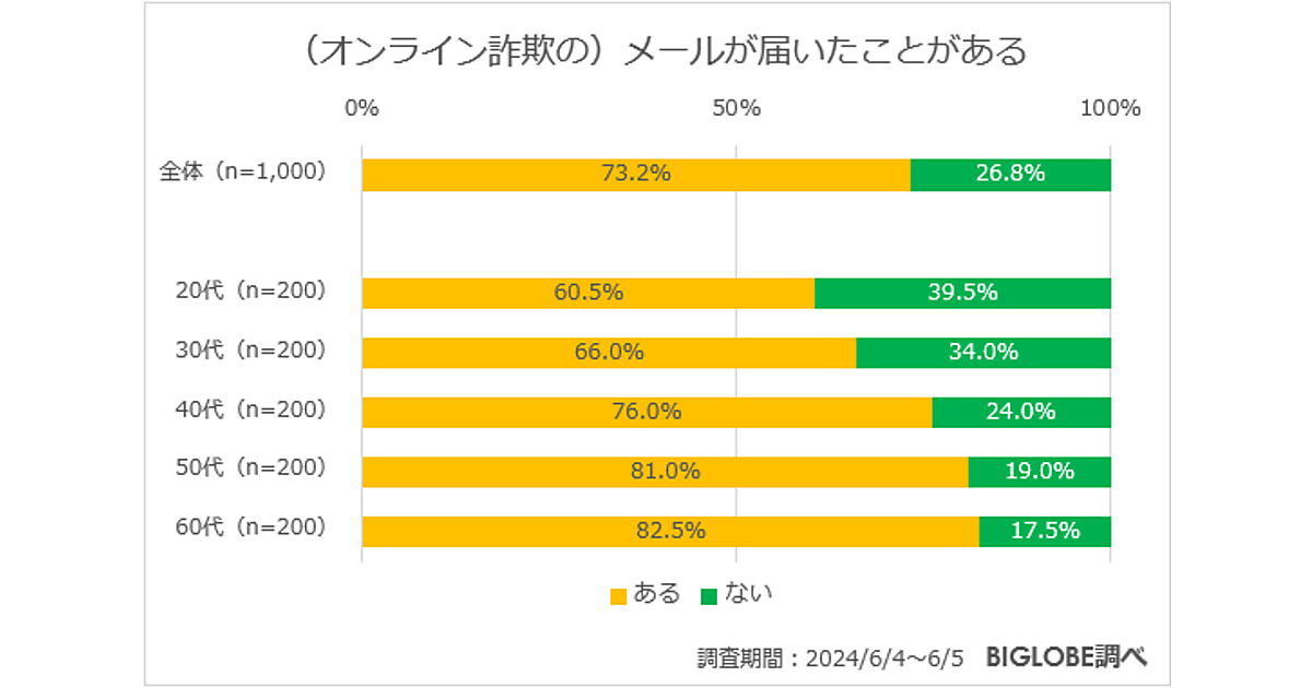 ビッグローブは、「オンライン詐欺・フェイクニュース」に関する調査結果を発表した。全国の20代~60代の男女1,000人が回答している。