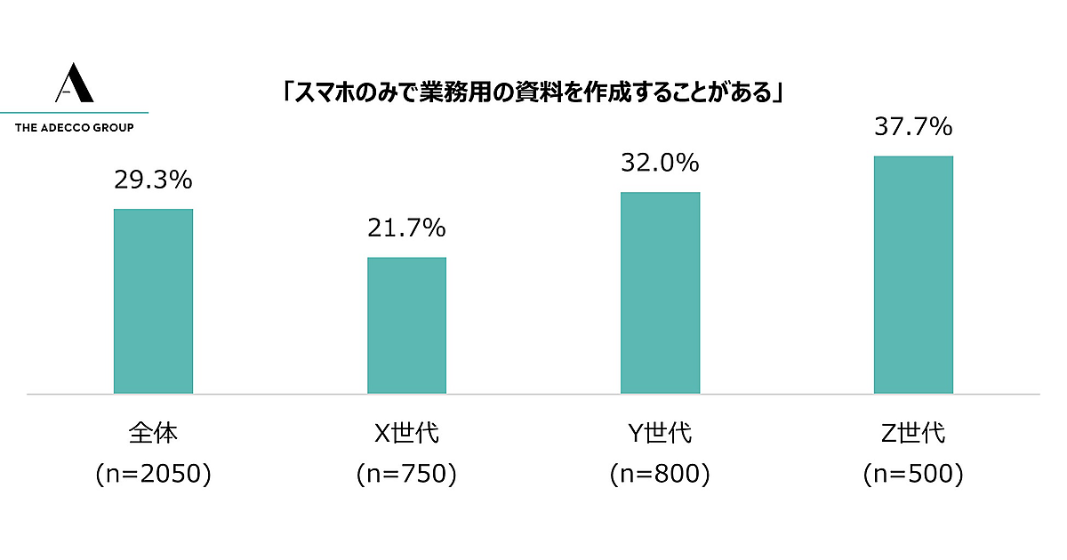 Z世代の約4割が「スマホのみで業務用の資料を作成する」と回答。Y世代・X世代の働き方と比較【アデコ調べ】