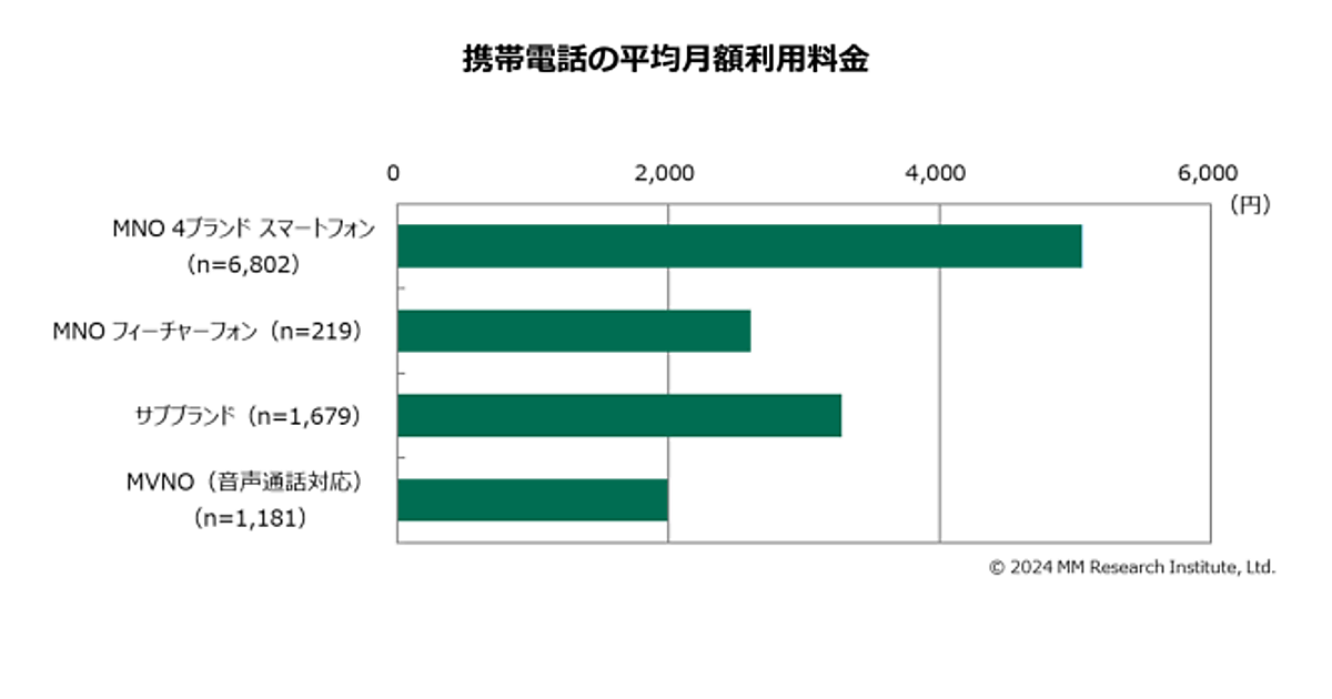 MM総研は、「携帯電話の月額利用料金とサービス利用実態(2024年7月調査)」に関する調査結果を発表した。15~69歳の男女1,425人が回答している。