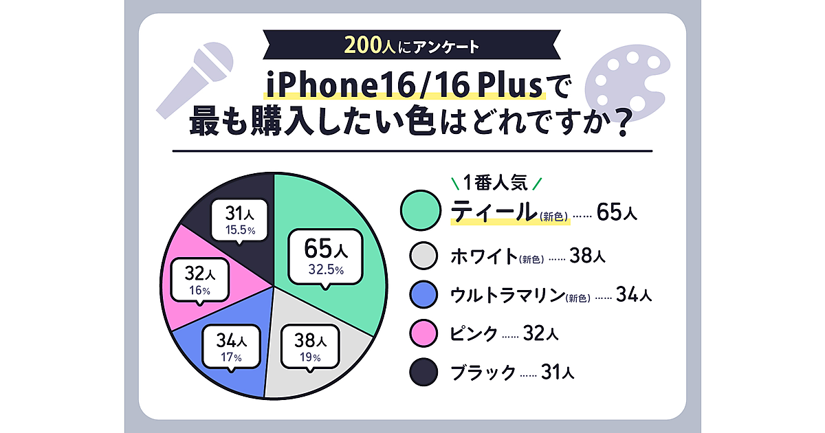 ショーケースは、iPhone・スマホの情報サイト「ショーケース プラス モバイル」にて、「iPhone16シリーズの人気のカラー調査」を実施した。10代〜60代の男女200人が回答している。