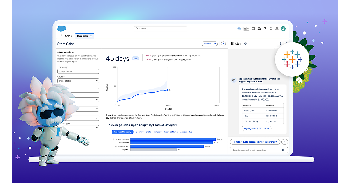 日本法人のセールスフォース・ジャパンが9月19日に日本語訳を公表した。9月12日(米国時間)公表の自律型AIエージェント「Agentforce」を搭載するTableau Einsteinは、サイロ化したデータを横断して情報を探し出したり、データの専門家でなくても業務遂行に必要な情報を入手してリアルタイムでインサイトを見つけたりすることができる。
