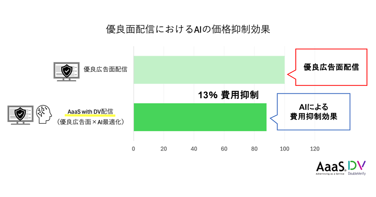 業務提携の第1弾。動画配信サービスには毎日さまざまなユーザーが膨大な量のコンテンツをアップロードするため、広告配信でのブランドセーフティと効率性が課題になっている。優良広告面への配信は通常配信より費用がかかるが、AaaS with DVはAI(人工知能)による分析、入札、オペレーション管理で配信ペースやタイミングを最適化してコストを抑える。