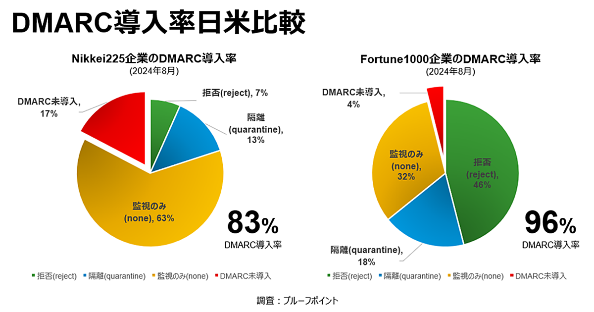 厳格なDMARCの導入、日経225で増大するも米国よりかなり低い割合