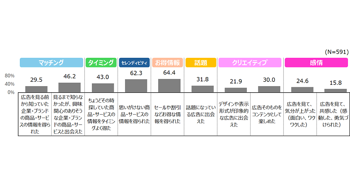 ユーザーがポジティブに感じる広告は「お得情報」「セレンディピティ」