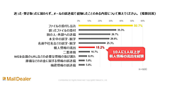 また、メールでの問い合わせ対応で経験したことがある「ヒヤリハット」を聞くと、「メールの誤字や脱字」が42.0%、「メールの見落としや対応漏れ」が39.0%、「添付ファイルのミス」が32.0%で上位3つとなった。