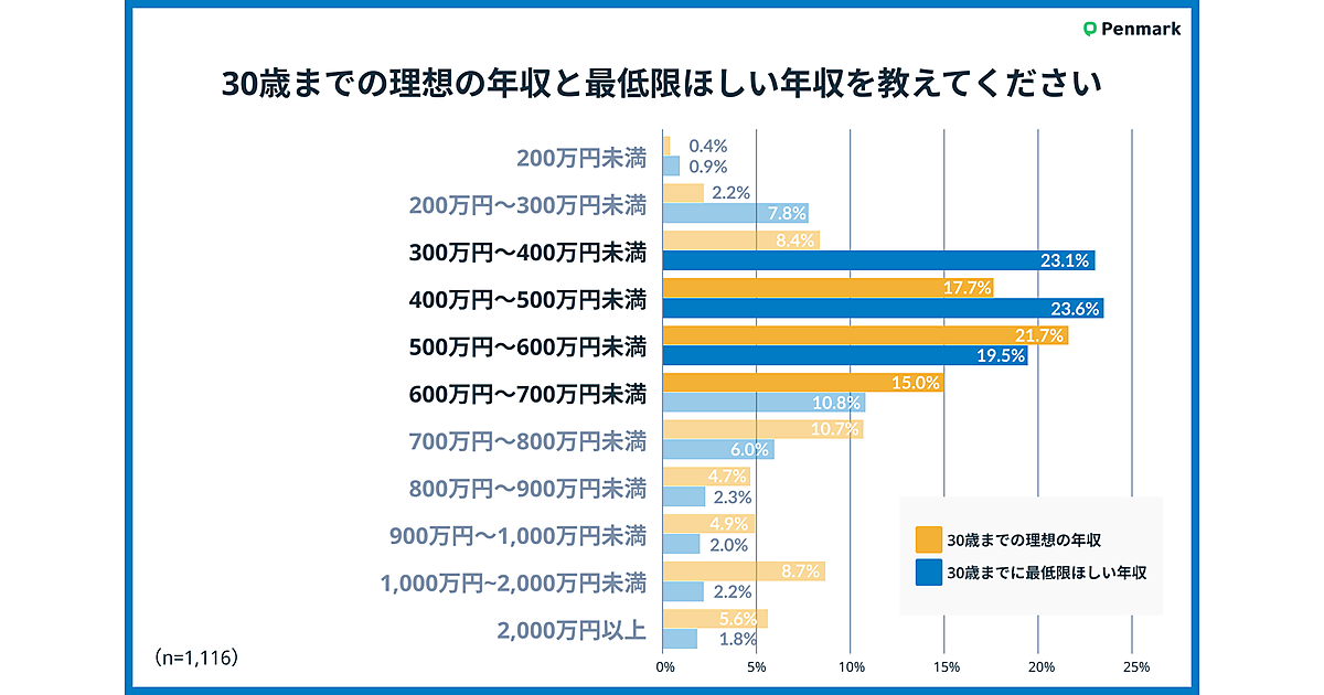 ペンマークは、「理想の年収」に関する調査結果を発表した。同社のSNS「Penmark」の公式LINEアカウントを利用中の現役大学生1,116人が回答している。
