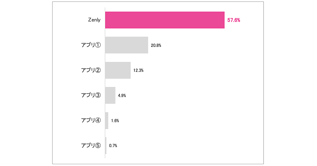 また、位置情報アプリと聞いて第一想起するアプリを聞くと、「Zenly」が57.6%で圧倒的だった。Zenlyは月間約4,000万人のアクティブユーザーの人気アプリであり、2023年2月にサービス終了となったが、1年以上経過した今でも認知度が高いことがわかった。