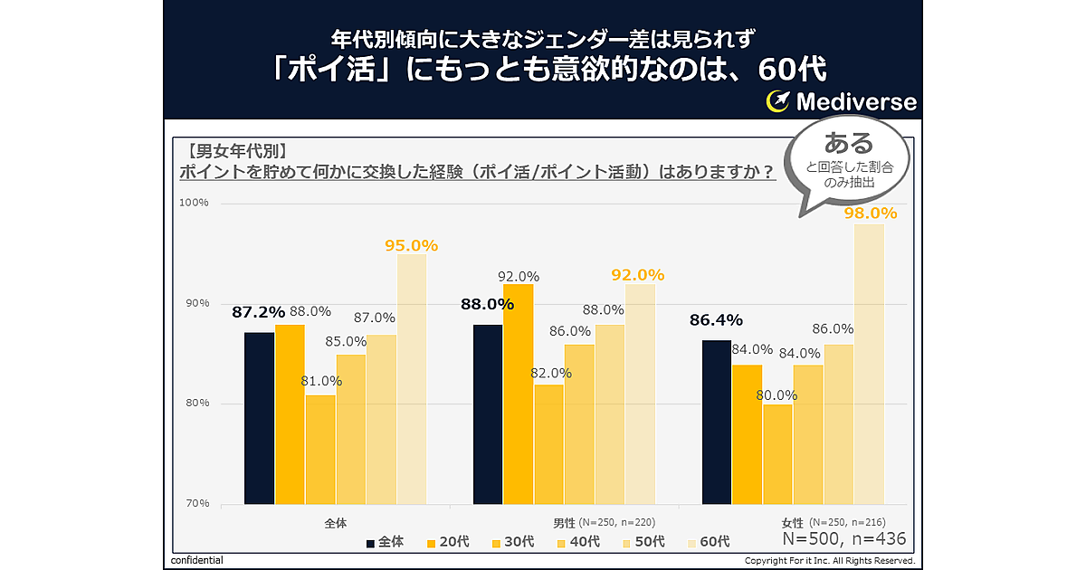 フォーイットが運営するメディア「Mediverse(メディバース)」は、「ポイ活(ポイント活動)に関するアンケート」を実施した。20歳以上の男女500人が回答している。