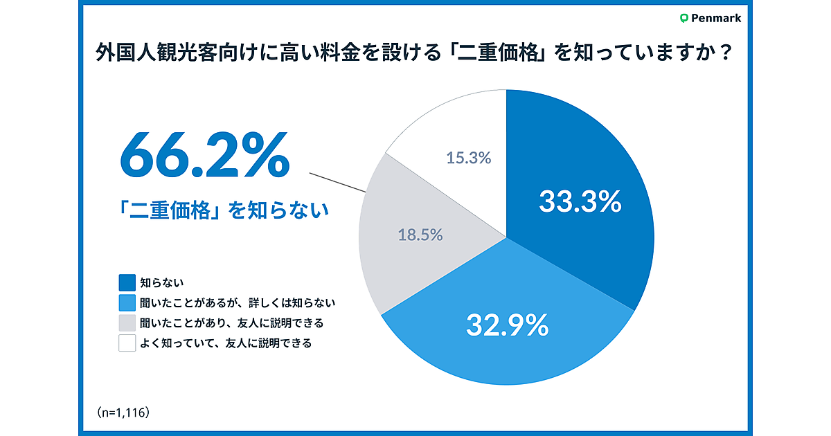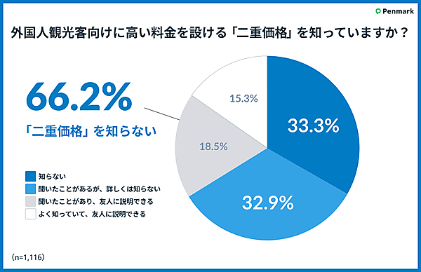 ペンマークは、「外国人観光客向けの二重価格」に関する調査結果を発表した。学習管理SNS「Penmark」を利用している全国の現役大学生1,116人が回答している。