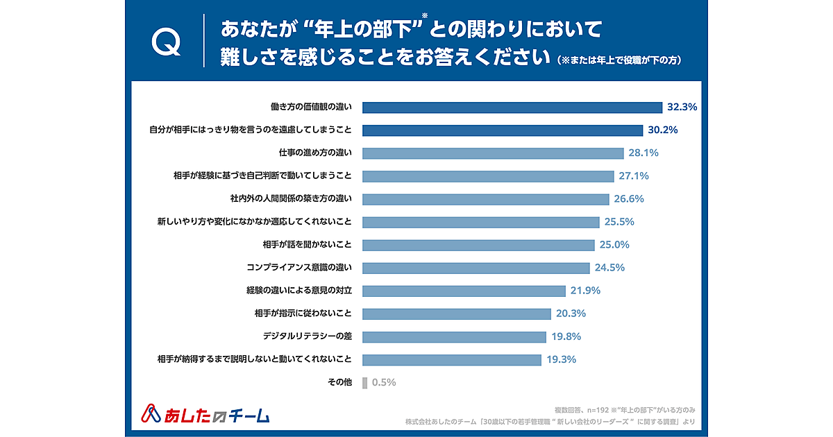 “年上の部下”ができて悩むこと、1位は「働き方の価値観の違い」