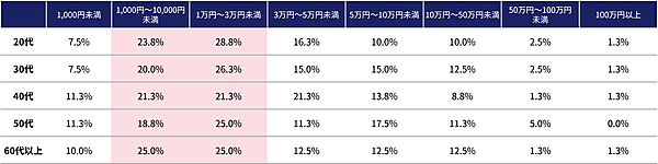 「不正利用の被害額」は「1,000円~3万円未満」がボリュームゾーンで全体の47.1%を占める。「1万円~3万円未満」の被害額が25.3%、「1,000円~1万円未満」が21.8%と多い。