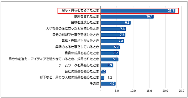 やりがいを感じる場面、感謝よりやっぱり給与