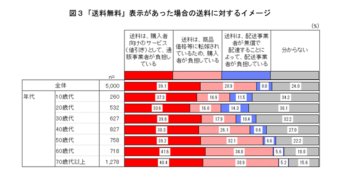 「送料無料」表示の見直し議論、認知度は27%に向上