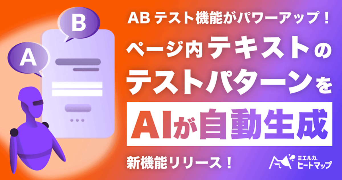 Webマーケティング支援のFaber Company(ファベルカンパニー)は、提供しているユーザー行動分析・CVR(顧客転換率)改善ツール「ミエルカヒートマップ」に改善テキスト案をAI(人工知能)が自動レコメンド(推奨)する新機能を追加したと10月30日に発表した。効果を比較するABテストでテキスト変更のアイデア出しをAIが支援して、誰でも簡単にABテストのスピードを加速させることができる。