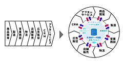 CxOアジェンダは、最高経営責任者(CEO)や最高執行責任者(COO)など経営幹部が優先的に取り組む課題や目標。例えば、生活者視点での統合的なロイヤルティマネジメントの推進では、CRM(顧客関係管理)やポイントプログラム、デジタルマーケティングが分断された状態からの解決を目指す。生活者の企業・ブランドの利用実態やビジネス課題を明らかにして、データ・システム基盤を中心に据えて各取り組みをつなぎ合わせる。