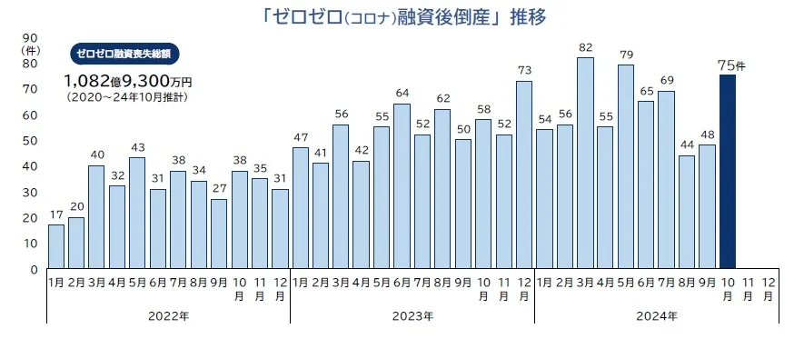 また、「ゼロゼロ(コロナ)融資後倒産」は75件(前年同月58件、29.3%増)となり、前年同月を上回った。なお、「不良債権」に相当するコロナ融資喪失総額は推計で約1,082億9,300万円にのぼり、国民一人あたり約900円の負担が発生している計算になる。その他、「人手不足倒産」「物価高倒産」の年間件数は過去最多を更新した。