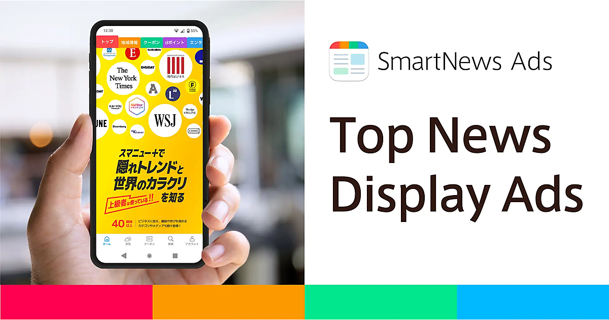 Top News Video Adsの広告出稿数は提供開始時の6倍以上に増加。今回、短時間で認知可能な静止画へのニーズを受けてTop News Display Adsを提供する。スマートニュースは、SmartNewsで配信する広告を「SmartNews Ads」の名で展開。アプリ上にインフィード、動画、ディスプレイなど各種方法で広告配信している。