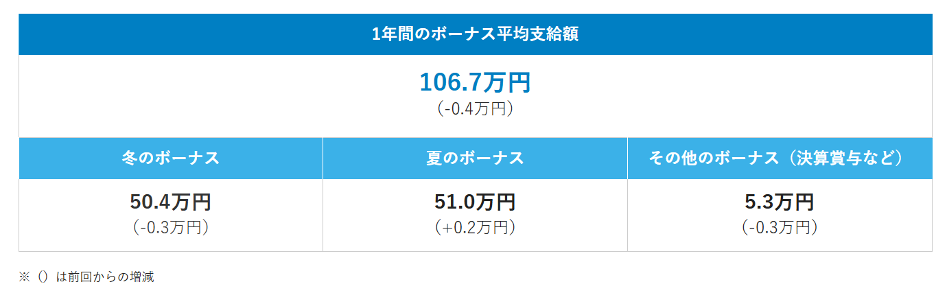2024年のボーナス平均支給額は年間106.7万円
