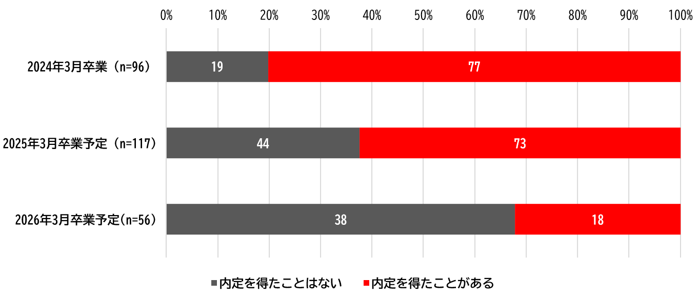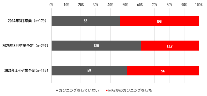 2026年卒業予定者については、これから内定が本格化することで「カンニングを行った企業から内定を得た」人数は増加すると予想される。