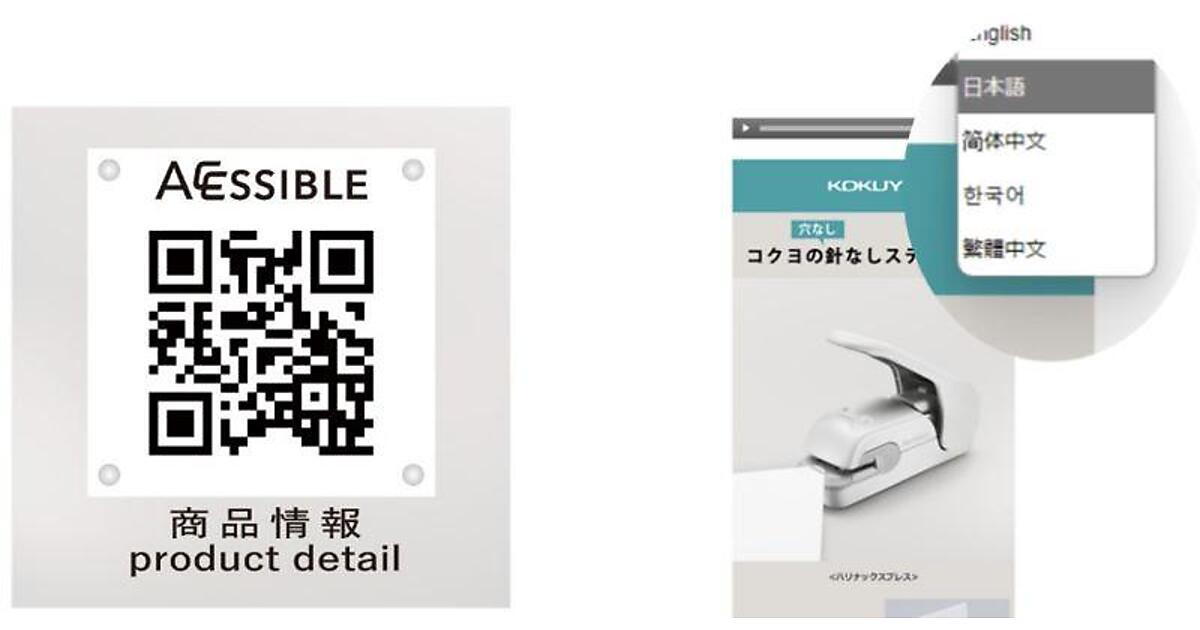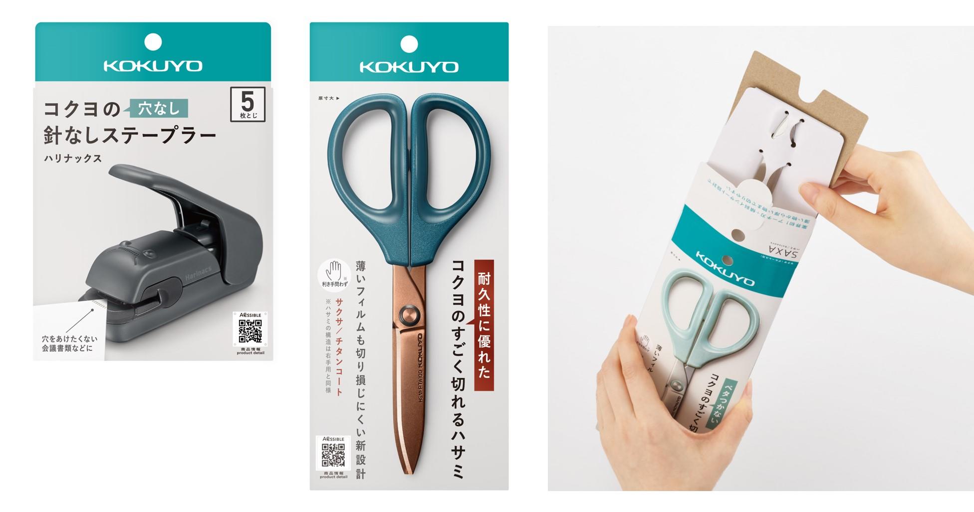 コクヨは、ブリスターパックと呼ぶプラスチック製の包装資材を使うハサミなどの金属文具を中心に、環境への配慮から紙パッケージへの切り替えを推進。紙ならではの商品価値の伝え方として、アクセシブルコードの表示を取り入れた。コードをスマートフォンで読み込むことで、外国人や視覚障害者でも商品の特長や使用法が分かる。