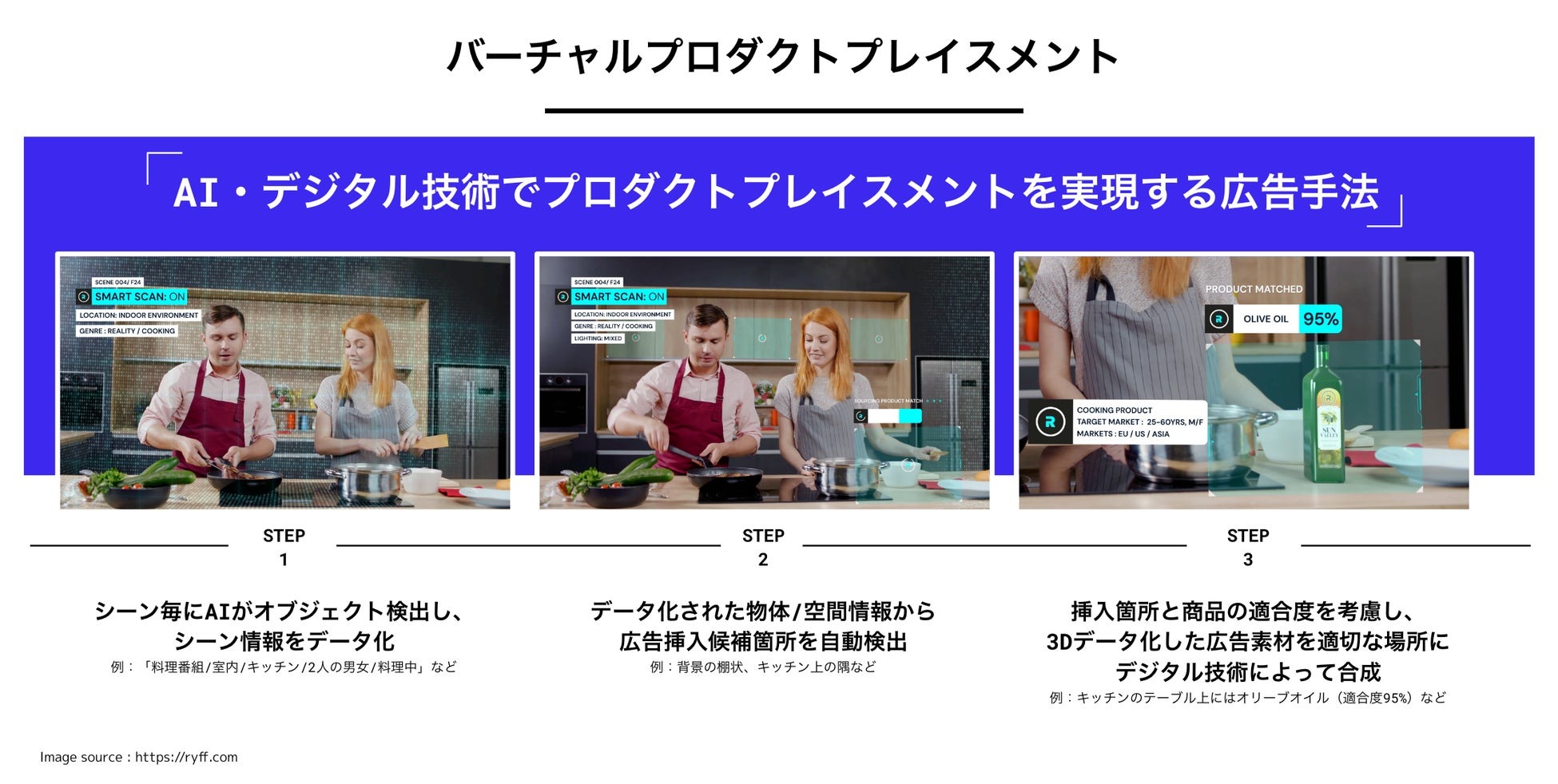 既に収録した番組内の登場人物や状況をAI技術で解析し、どんなブランド商品をどんな形状でどう配置できるか可視化。広告主などは後から番組内での配置を決められる。対象番組は「オオカミには騙されない」「今日、好きになりました。」シリーズ」「恋する❤週末ホームステイ」の各シリーズと「GIRL or LADY ~私が最強~」。