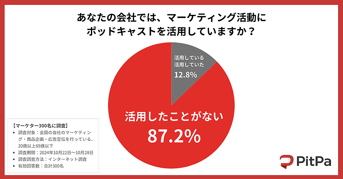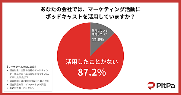 ポッドキャスト制作事業「PitPa」を運営するオトバンクは、「ポッドキャスト」に関する調査結果を発表した。企業のマーケティング担当者300人が回答している。