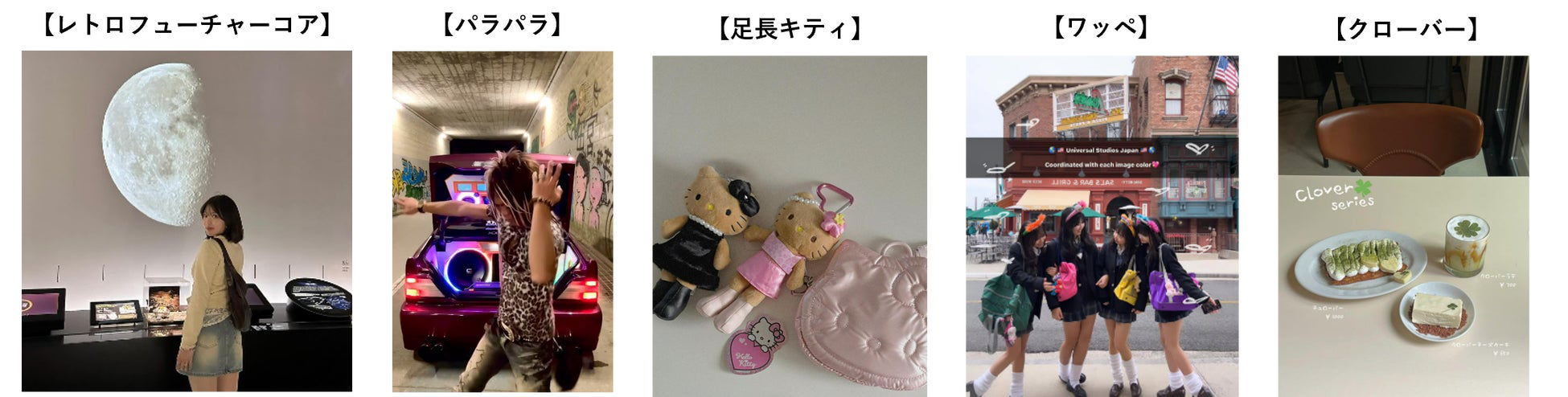 彩度の低い色や球体や曲線等を使用し、近未来・SFを彷彿とさせる世界観「レトロフューチャーコア」も話題。1980年代後半に流行したダンス「パラパラ」や平成初期のギャル風衣装を纏いスタイルアップしたハローキティ「足長キティ」など、平成レトロブームはまだまだ続きそうだ。
