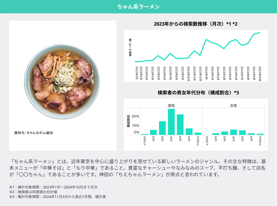「ちゃん系ラーメン」とは、基本メニューが中華そばともり中華で、たっぷりのチャーシューとスープ、平打ち麵が特徴の新しいラーメンのジャンル。近年東京を中心に盛り上がりを見せており、店名が「〇〇ちゃん」であることが多いことから「ちゃん系」と呼ばれている。