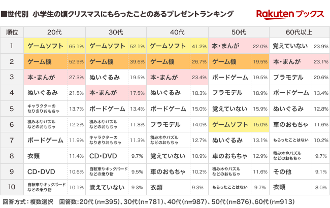 クリスマスプレゼントの定番、20-40代では「ゲームソフト」が1位