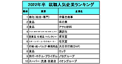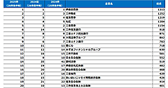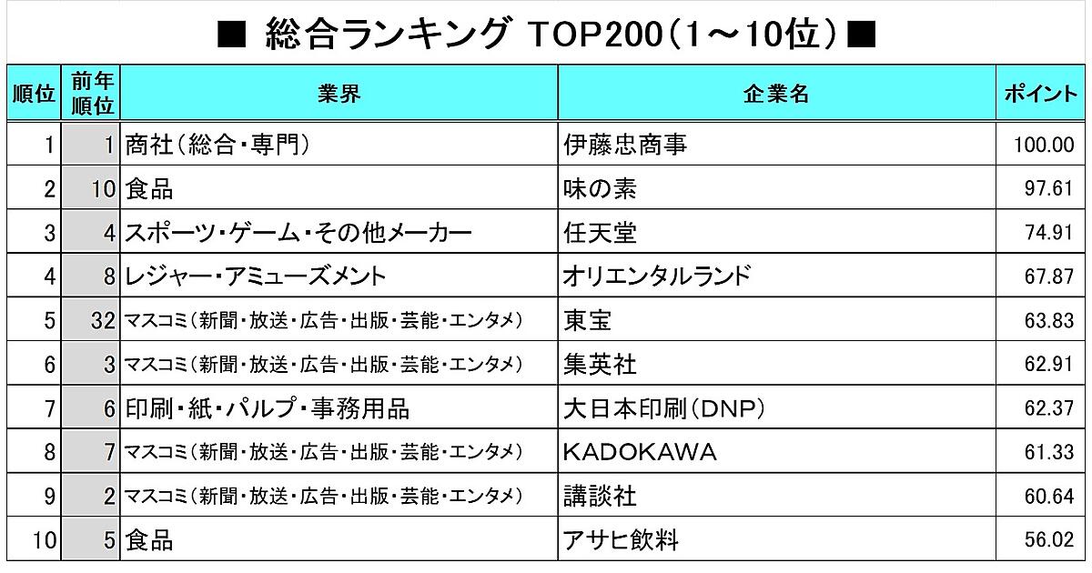 一方、3位「任天堂」、4位「オリエンタルランド」、5位「東宝」など、エンタメ系企業が上位に多数ランクイン。6位以下にも出版社などが多数ランクインした。