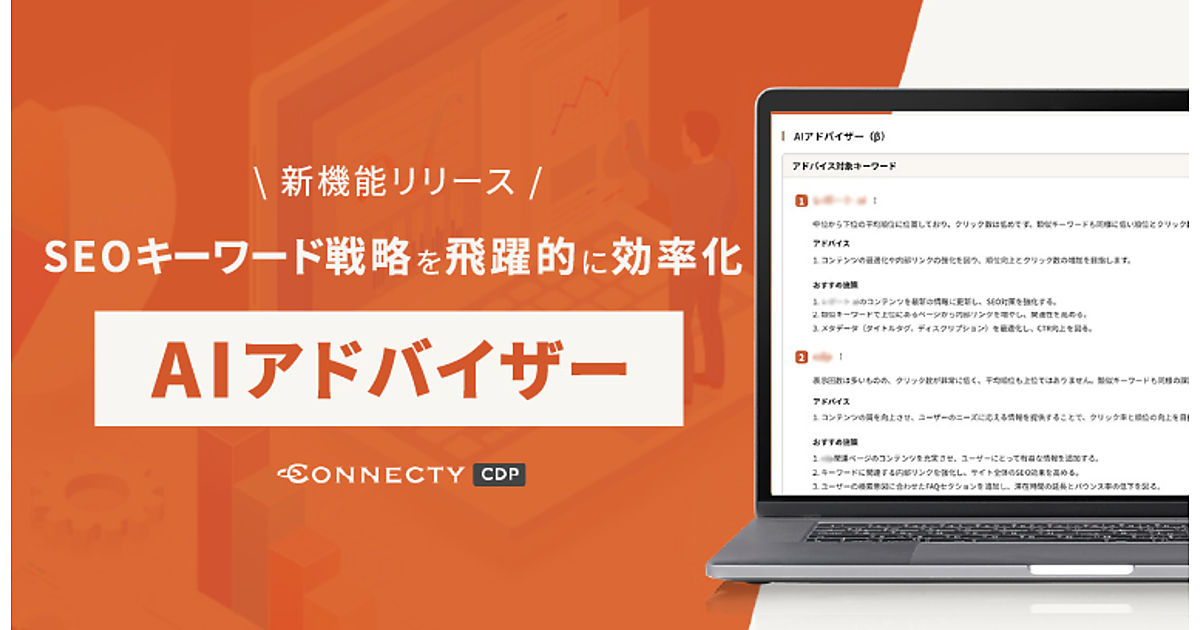 CMS(コンテンツ管理システム)・CDP(カスタマーデータプラットフォーム)展開とデジタル戦略支援事業のコネクティは、同社のデータ統合マーケティングツール「CONNECTY CDP」に、企業のSEO(検索エンジン最適化)キーワード戦略をAI(人工知能)がサポートする機能「AIアドバイザー」を加えた、と12月16日発表した。マーケティングが効率化できる。