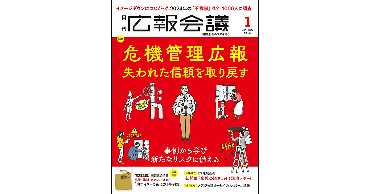 宣伝会議が発行する広報・メディア対応の専門誌『広報会議』は、「不祥事ランキング2024」を発表した。全国1000人の20~60代男女が、「イメージが悪化した出来事」を回答。詳細は『広報会議』2025年1月号(2024年11月29日発売)に掲載されている。